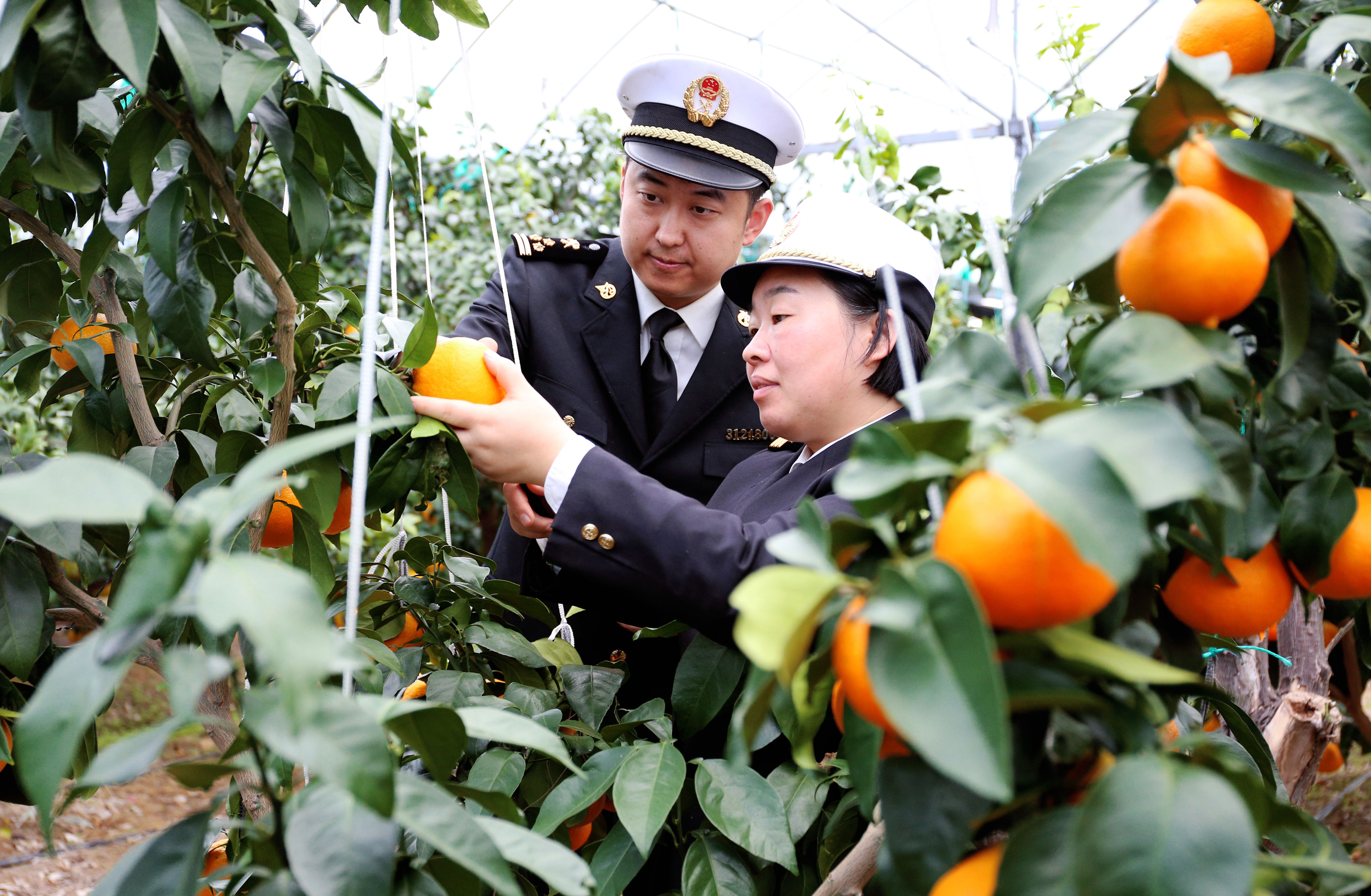 象山海关关员在“红美人”柑橘种植基地开展检查